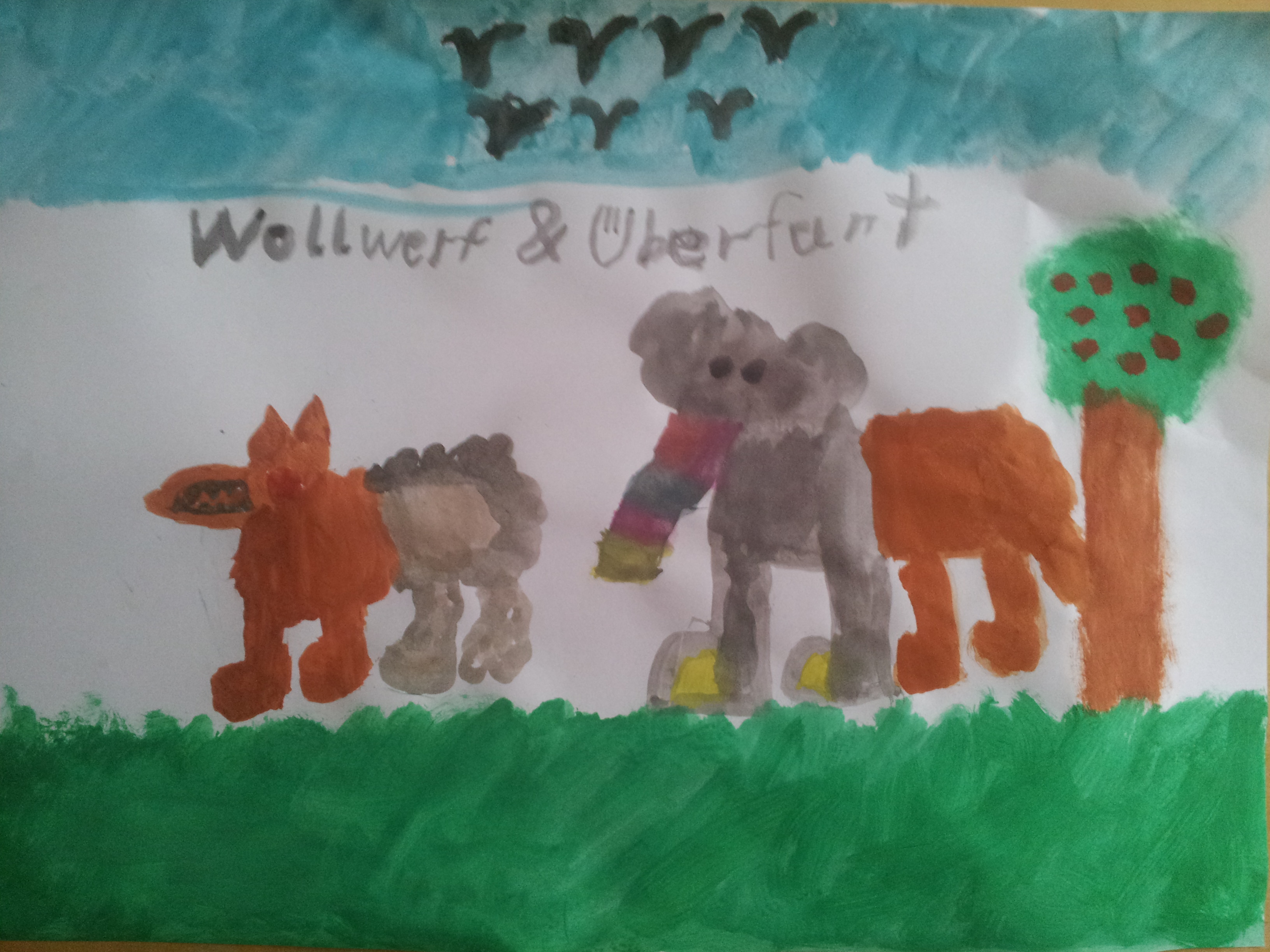Der Wollwerf, der sah ganz schaurig aus. Im Maul ganz spitze, scharfe Zähne und am Po, vom Schaf die Mähne.