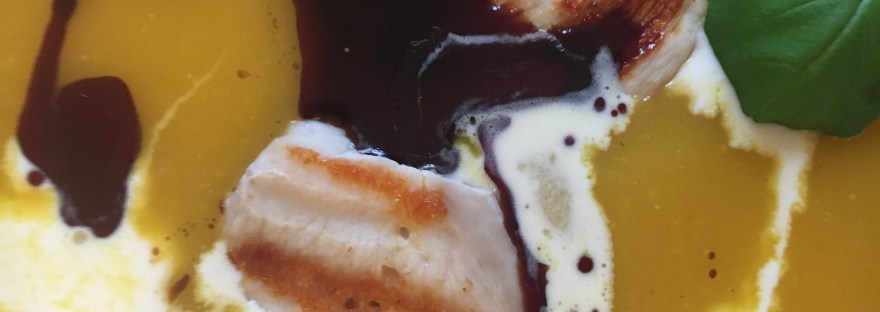 Für die Fleischesser unter euch habe ich diese Suppe in meiner Variante habe mit kleinen Hühnchenfilets serviert und das Ganze noch mit etwas Sahne und Kürbisöl verschmackofeinert. Ein echter Suppenliebling!!!